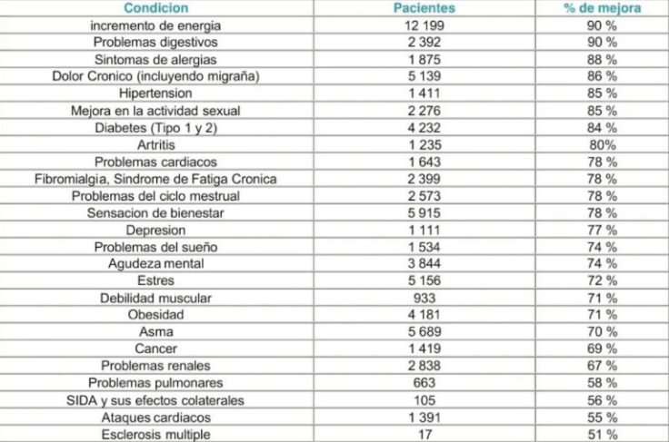 El porcentaje promedio de aquellos que expresan una mejoría significativa en su salud por el uso de Immunocal fue del 75%, este porcentaje es mayor en efectividad que muchas de las terapias convencionales utilizadas para el tratamiento de las mismas enfermedades.