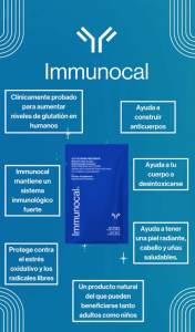 Immunocal es un suplemento precursor de glutatión, el antioxidante maestro del cuerpo. Este producto está clínicamente probado para: